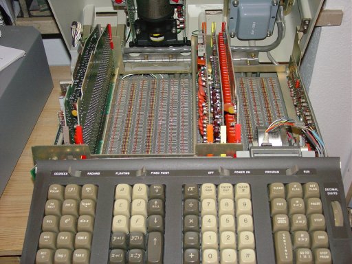 1968 von HP vorgestellter Tischrechner. Das für rund 4700 US$ angebotene Gerät war ausschließlich in diskreter Logik (Widerstand-Dioden-Netzwerk) aufgebaut. Das Programm ROM ist in einer 16-Ebenenen Platine mit orthogonal angeordneten Lese- Schreibleitungen und Schreib-Leserverstärkern angeordnet. Neben den Grundrechenarten ließen sich bereit trigonometrische Berechnungen durchführen.